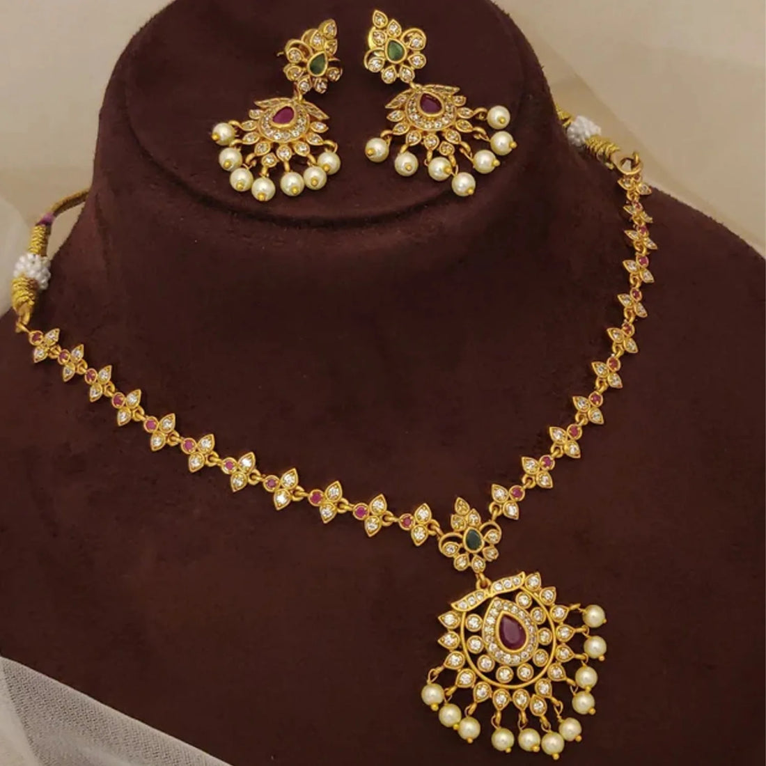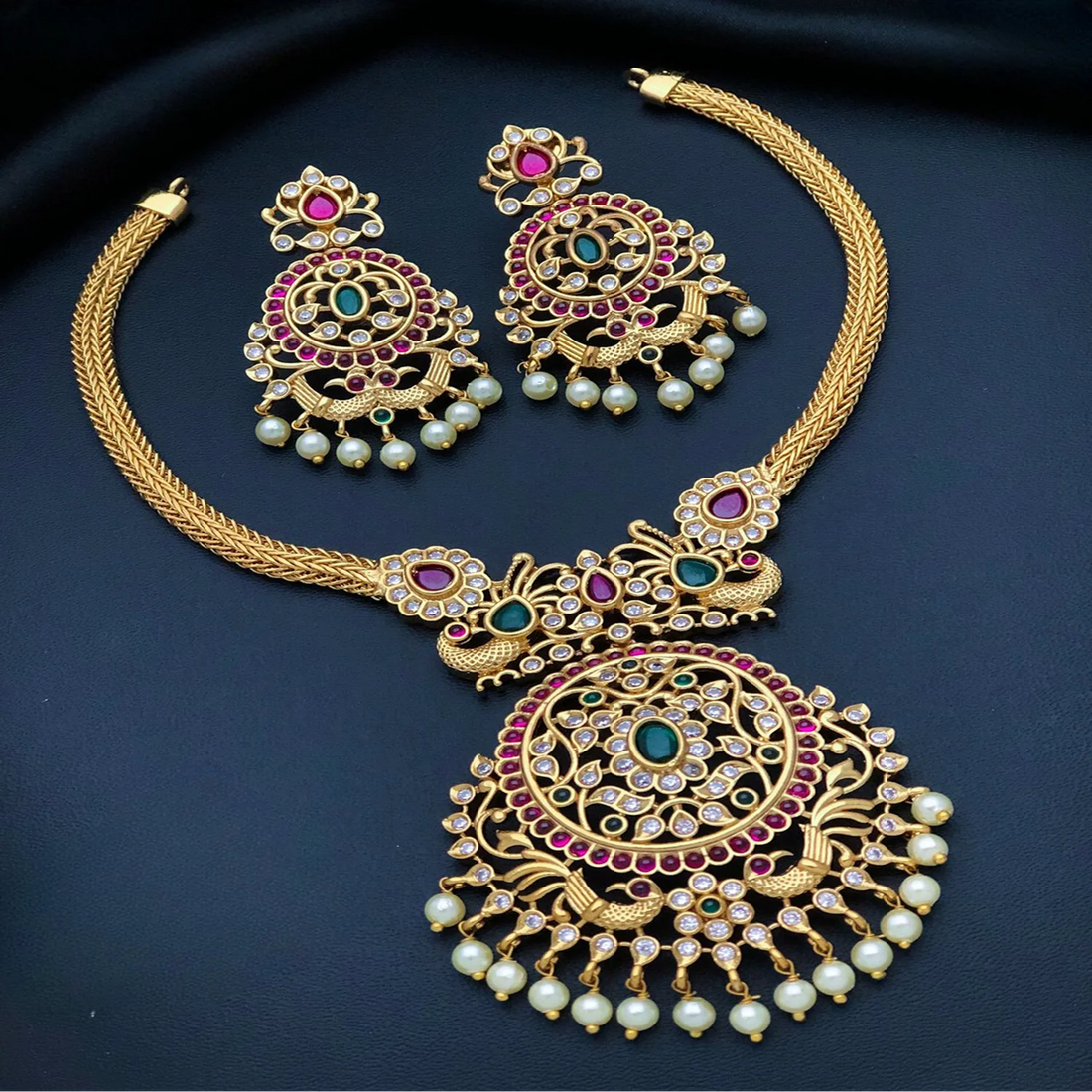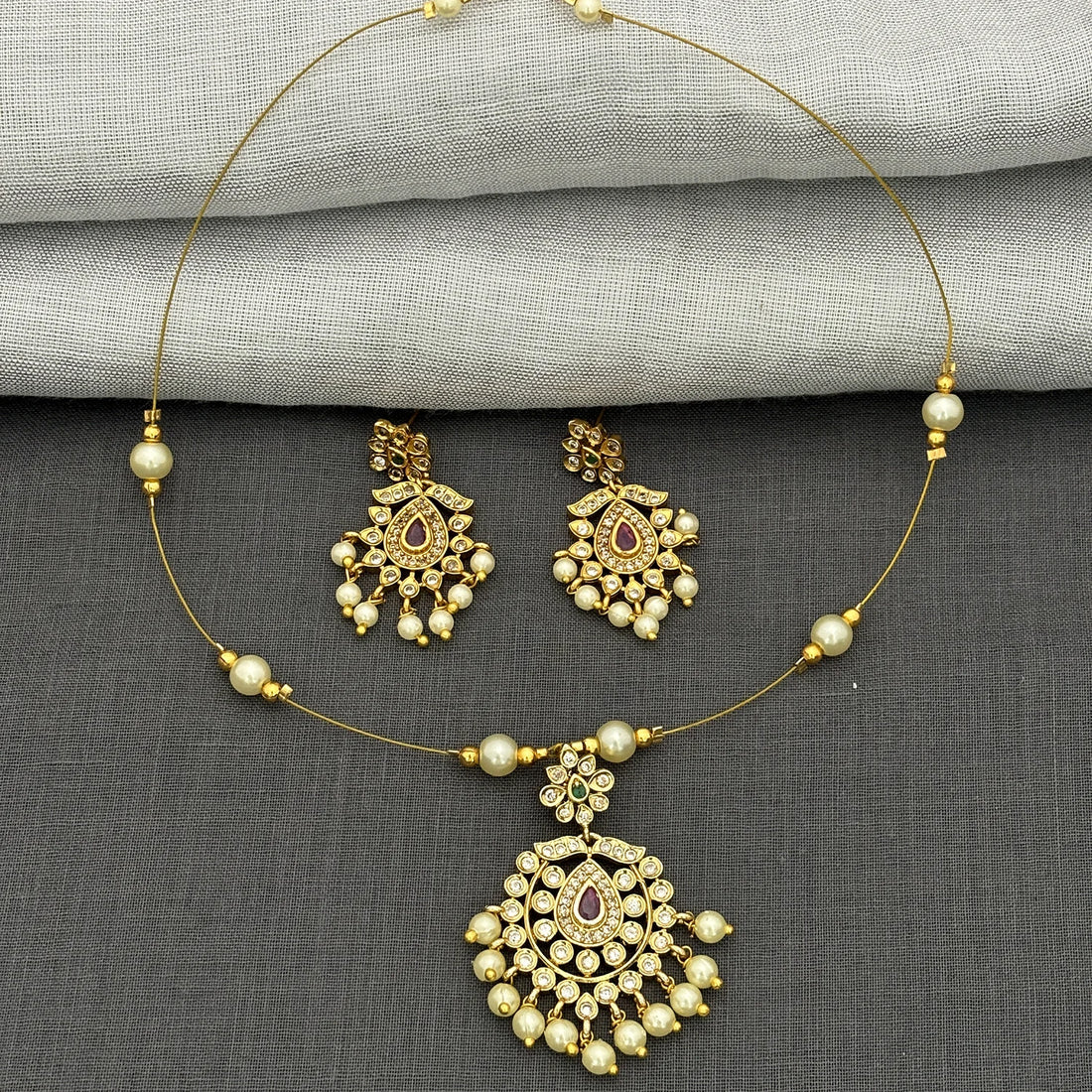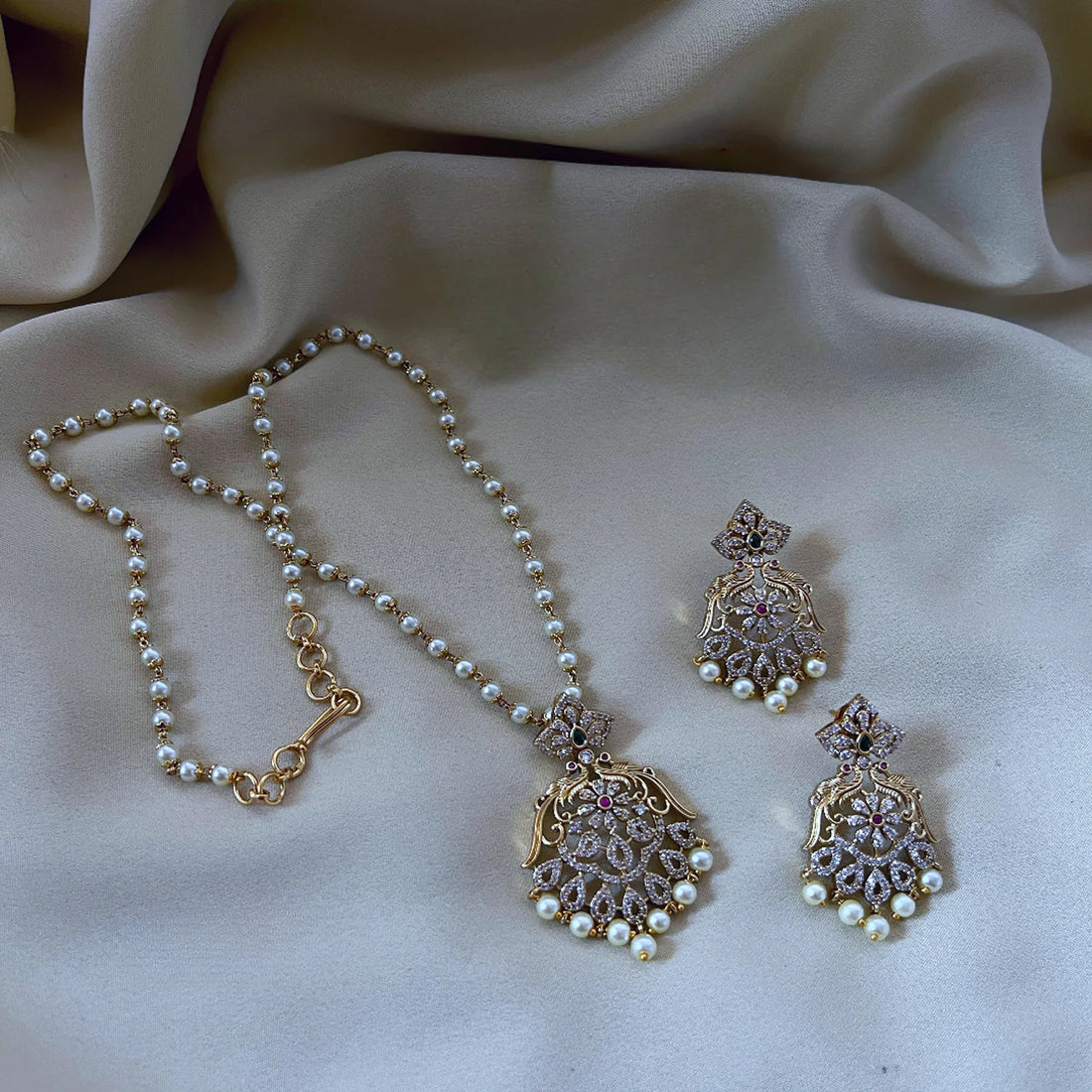 Designer Pearl AD Pendant Necklace Set with Earrings