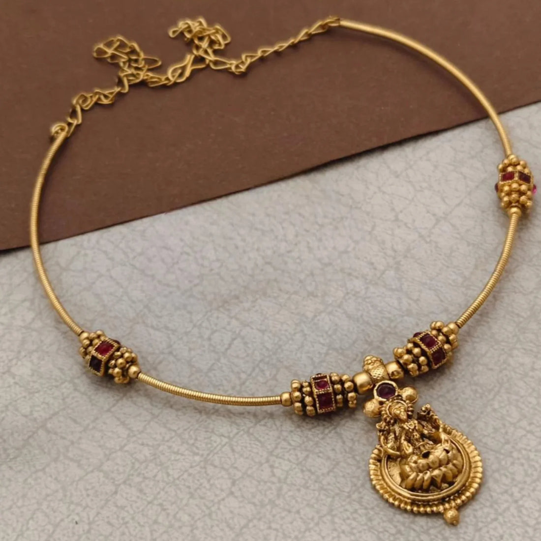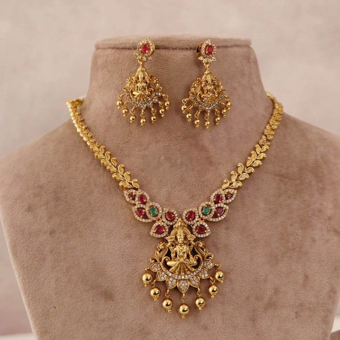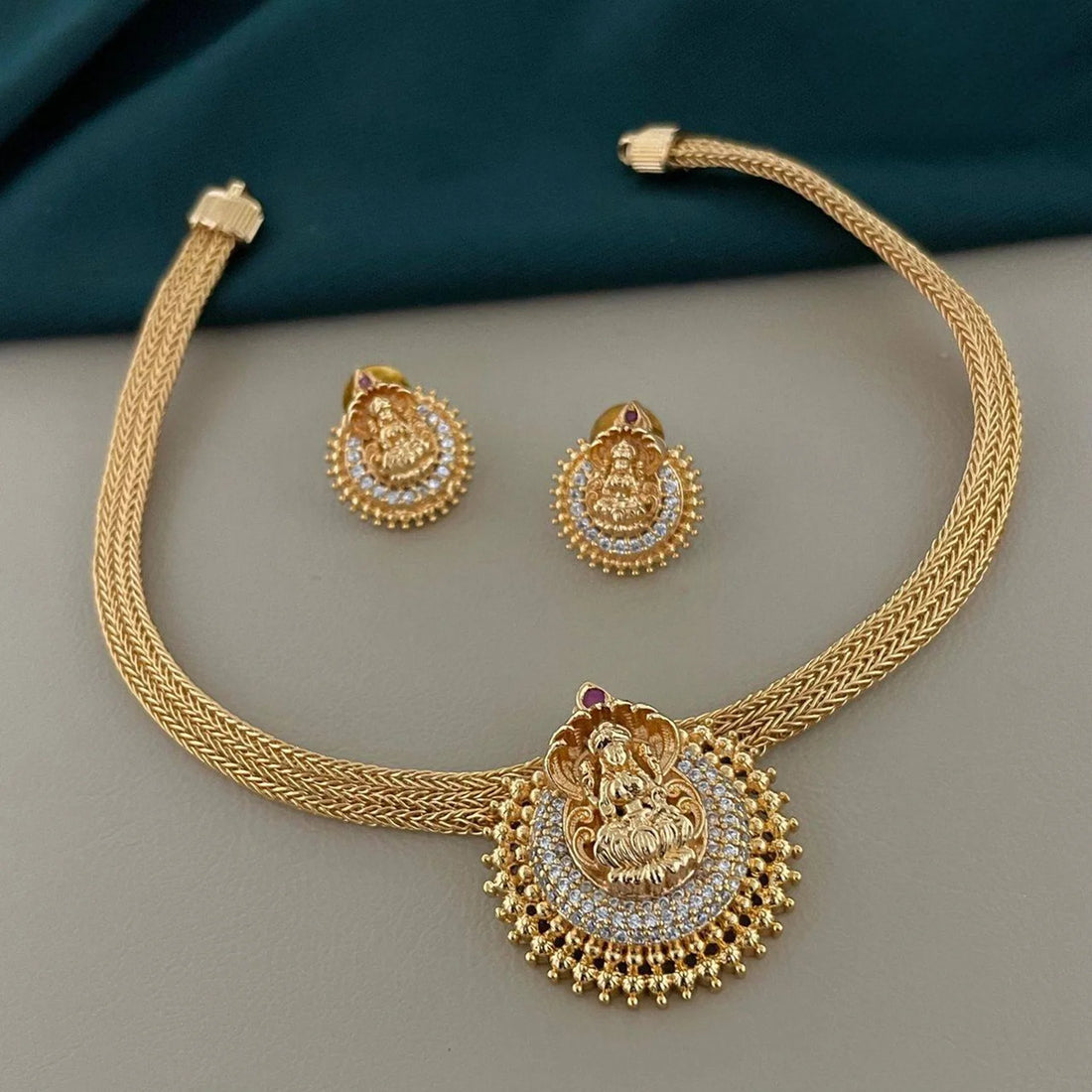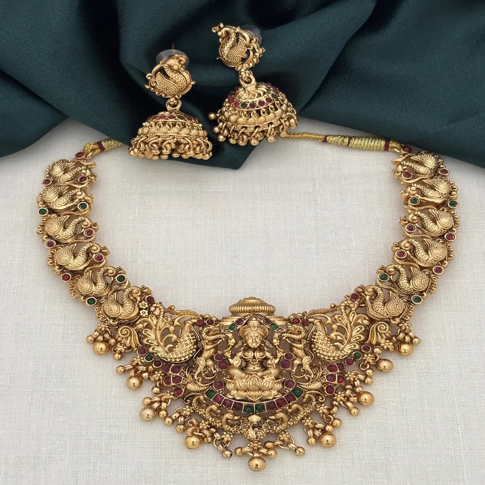 Temple Lakshmi Gold Plated Choker Set with Earrings
