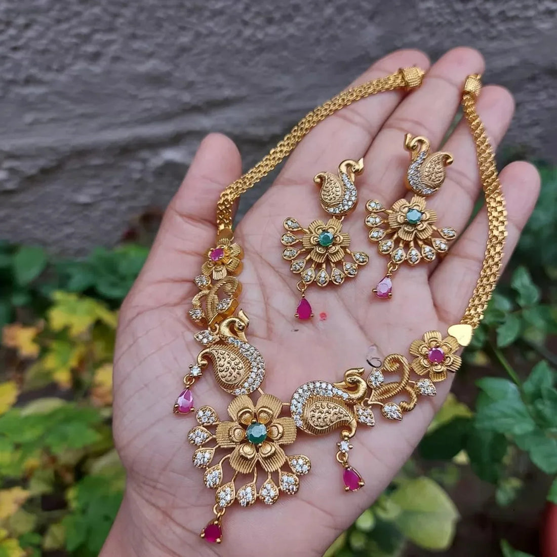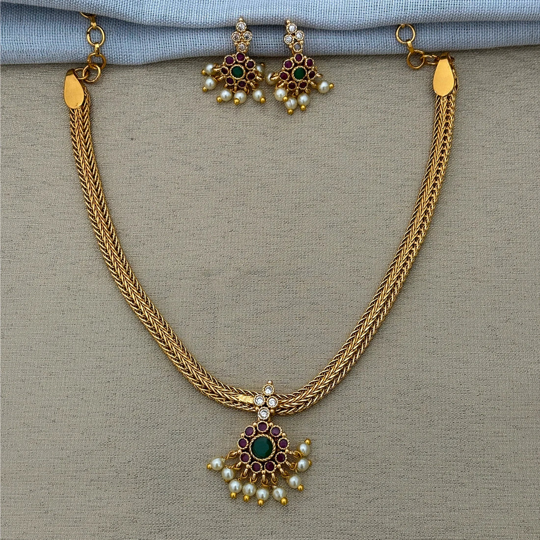 Bring timeless elegance to your ethnic look with this exquisite South Indian temple necklace set,...