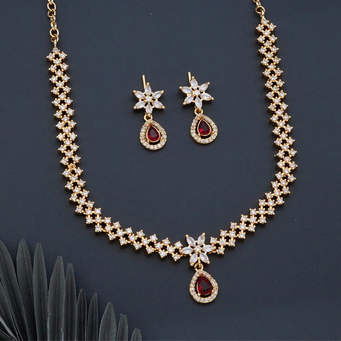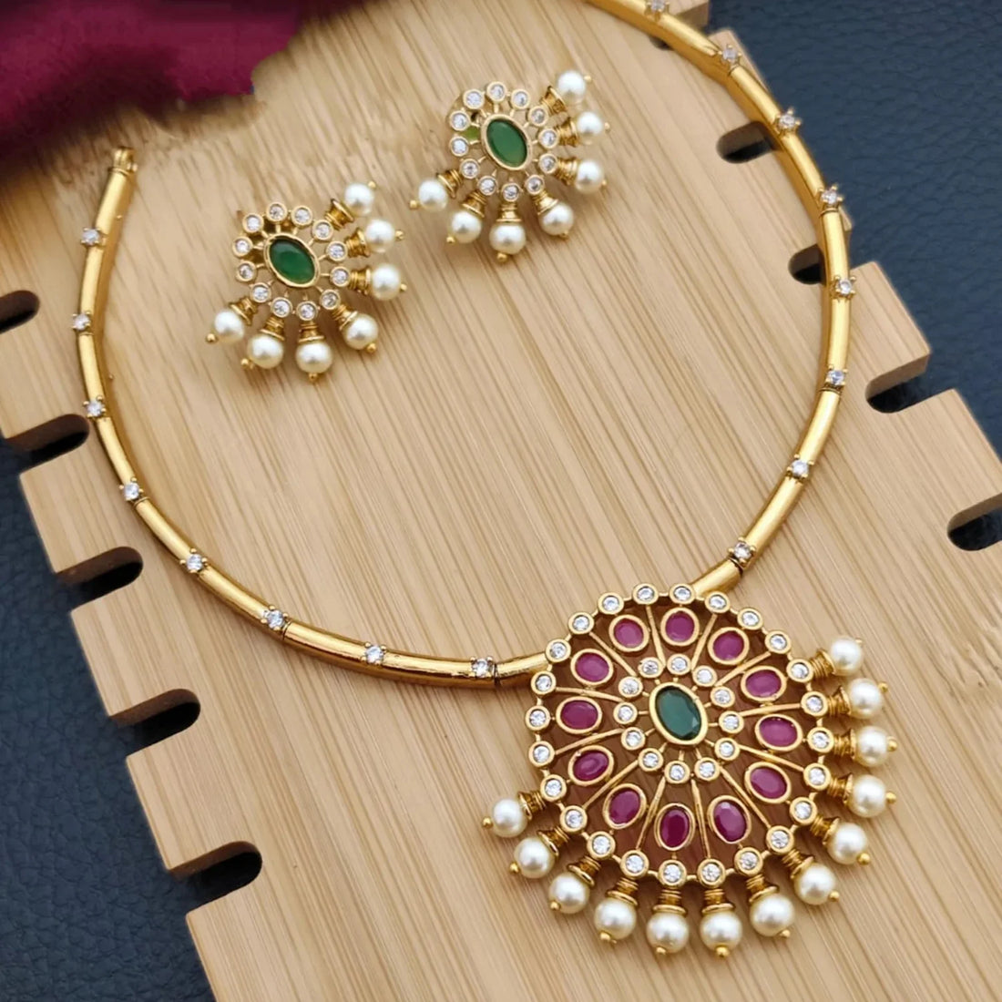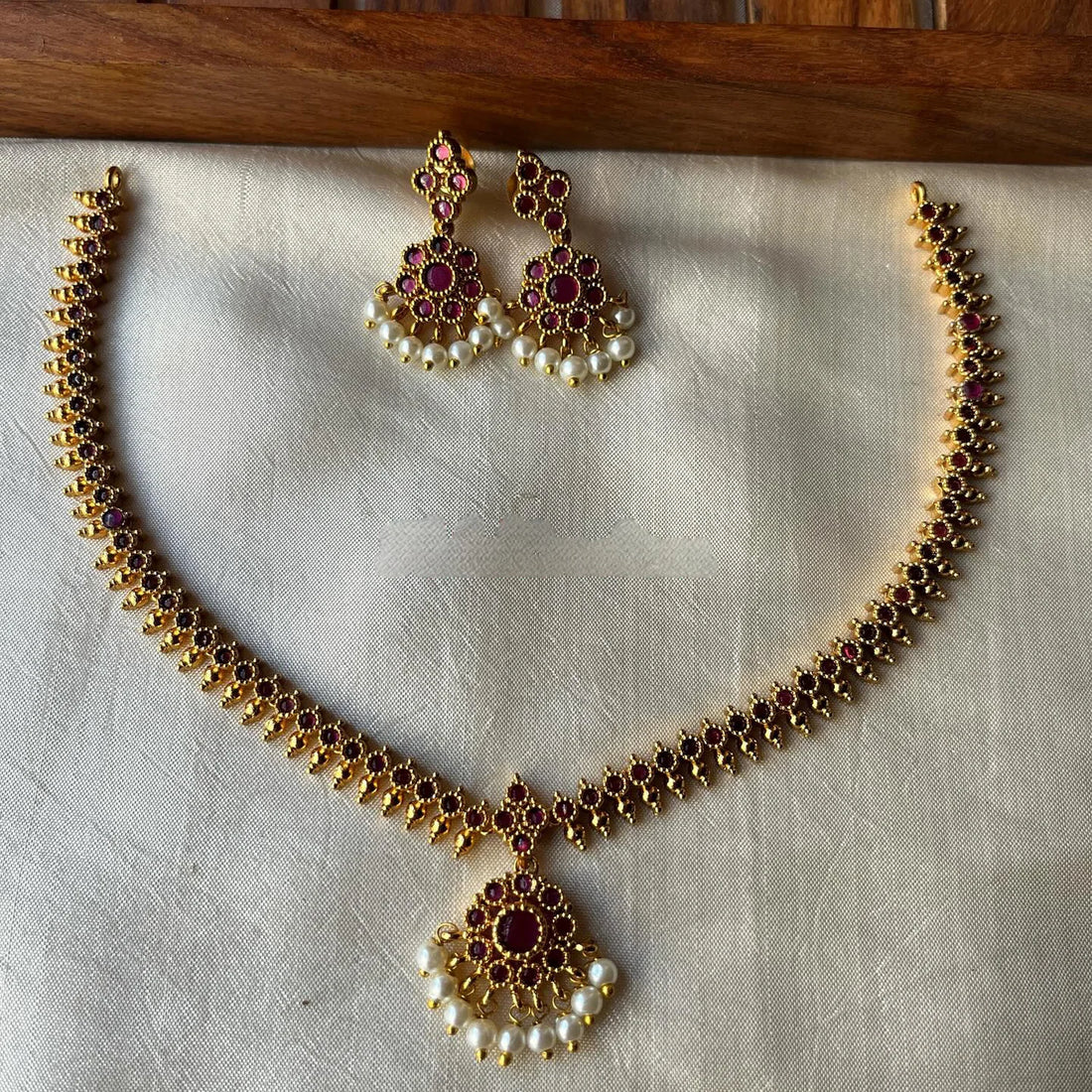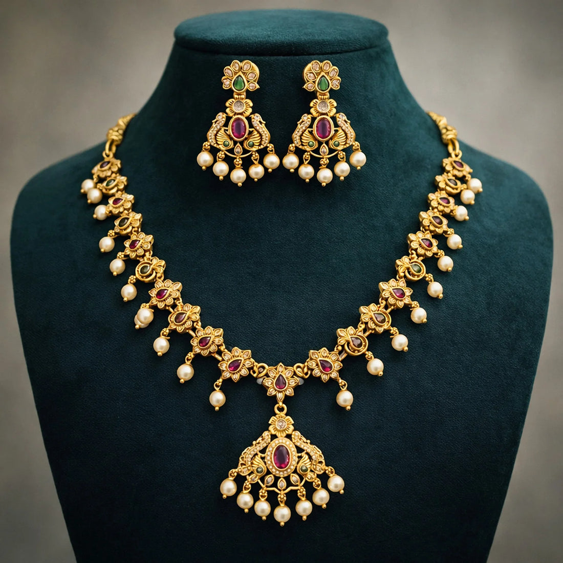 Ruby Green Pearl Gold Plated Pendant Necklace Set