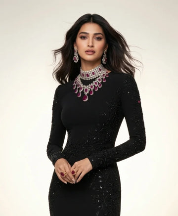 Elevate your elegance with this exquisite American Diamond choker set, designed to add a luxurious...