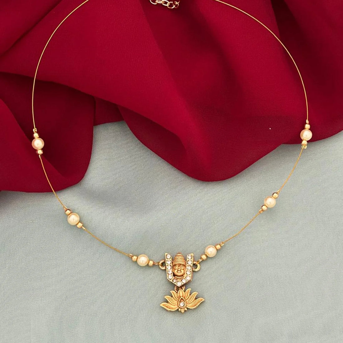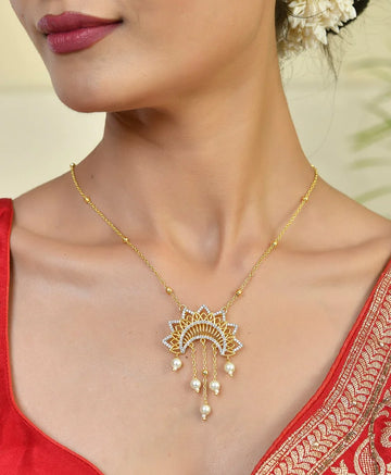 Lakshmi Lotus Pearl Gold Plated Pendant Set