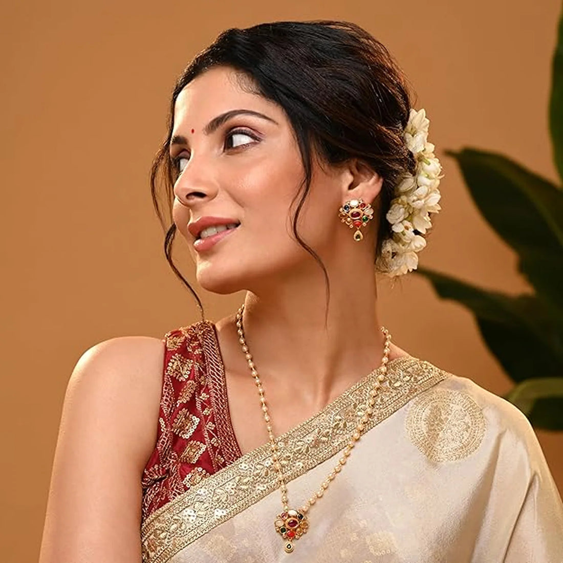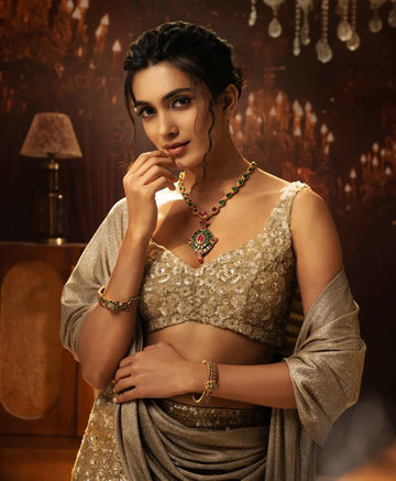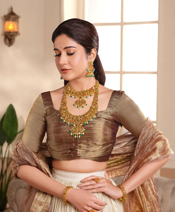 Step into elegance with this stunning double-layer South Indian necklace set, crafted to give you...