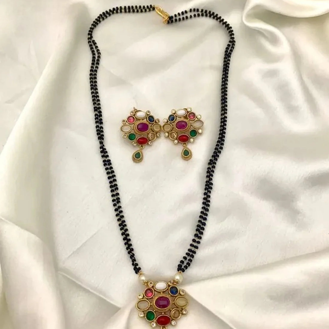 Designer Mangalsutra Pendant Set with Multicolor Stones