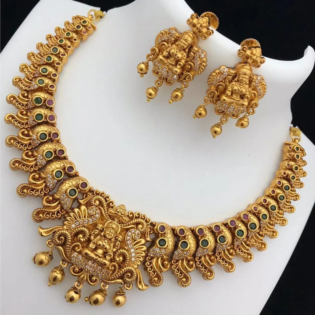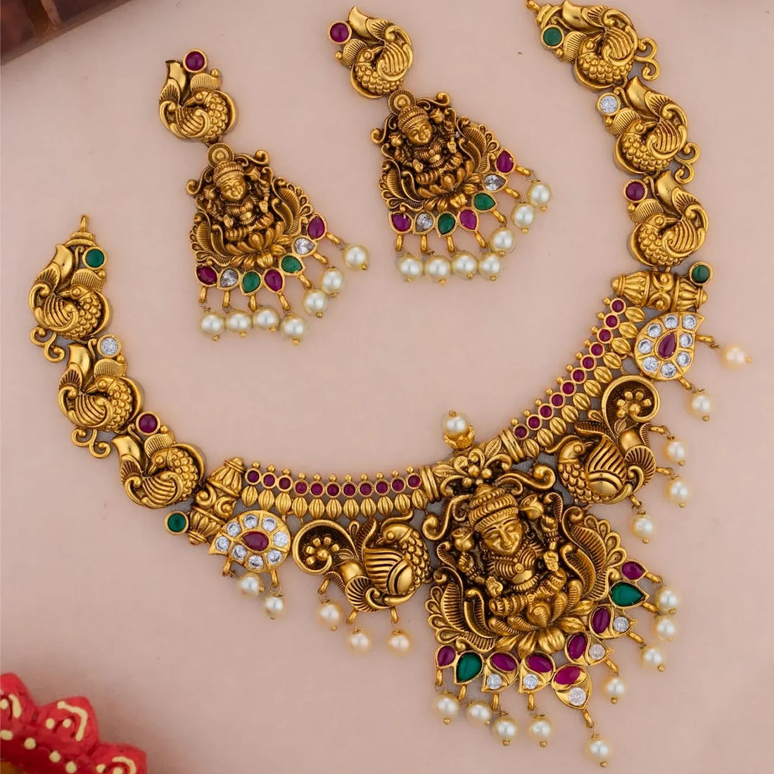 Antique Lakshmi Temple Gold Plated South Indian Necklace Set