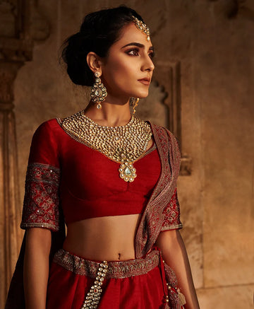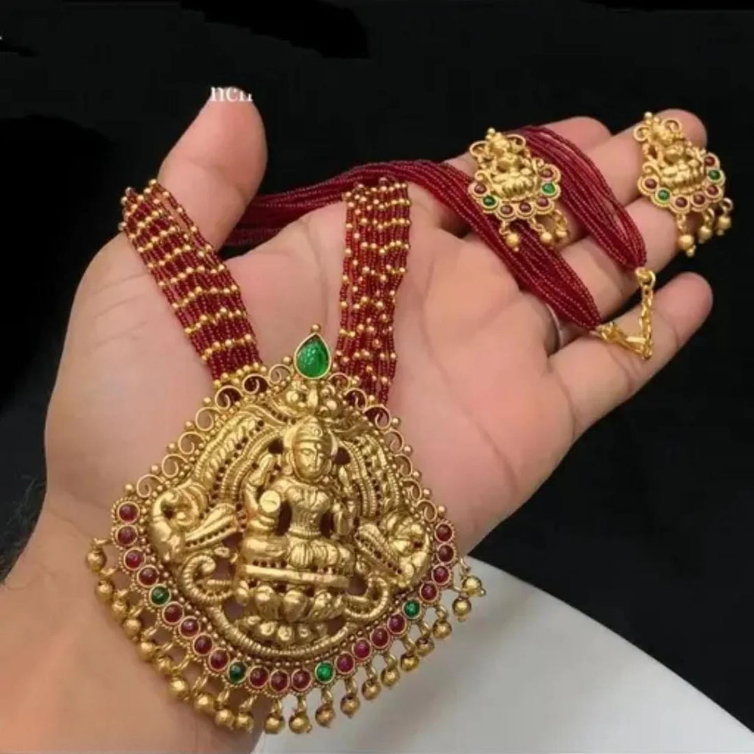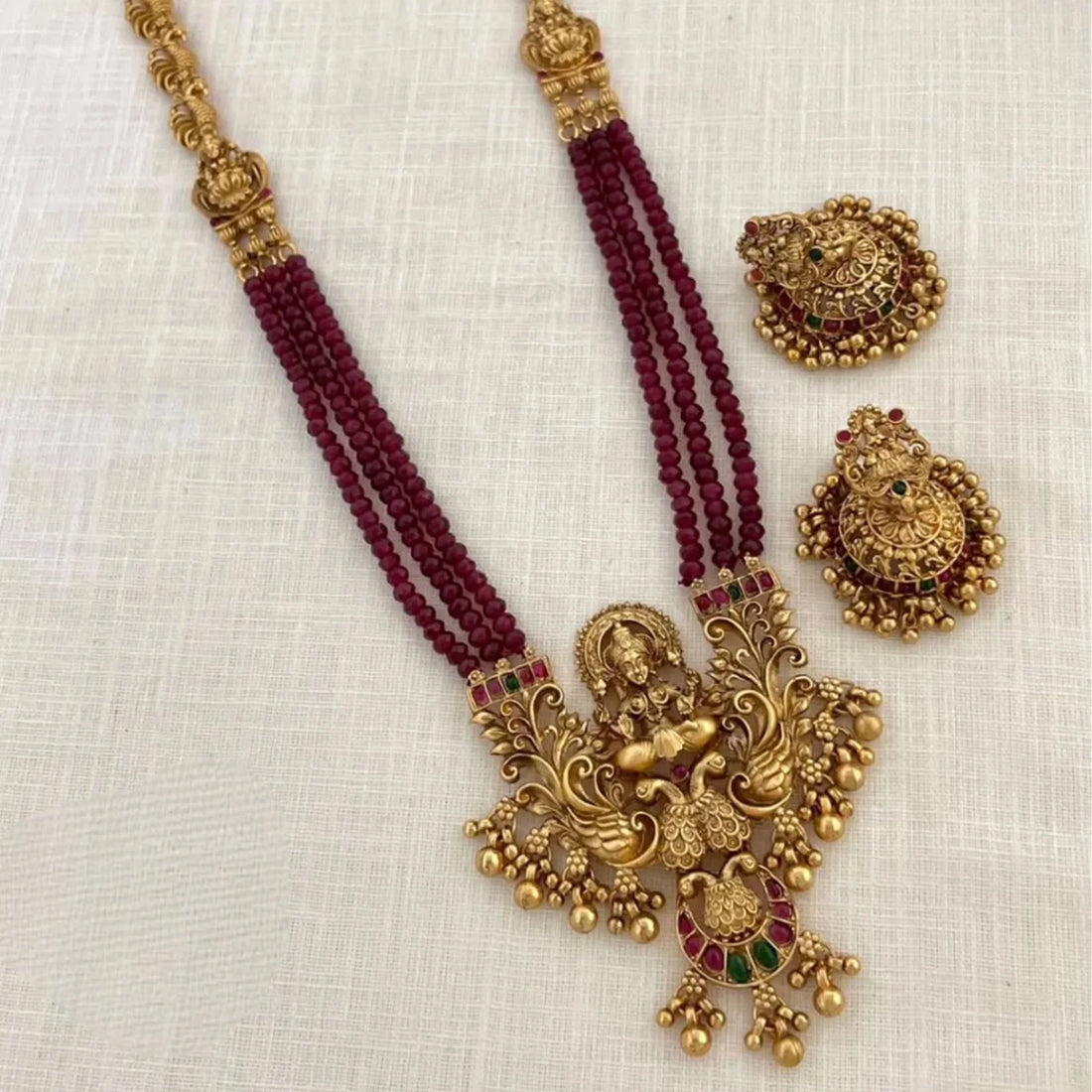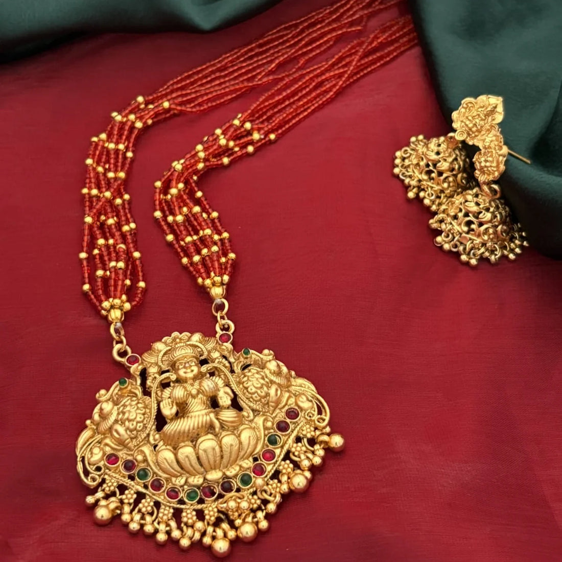 Lakshmi Temple Red Beads Gold Plated Necklace Set