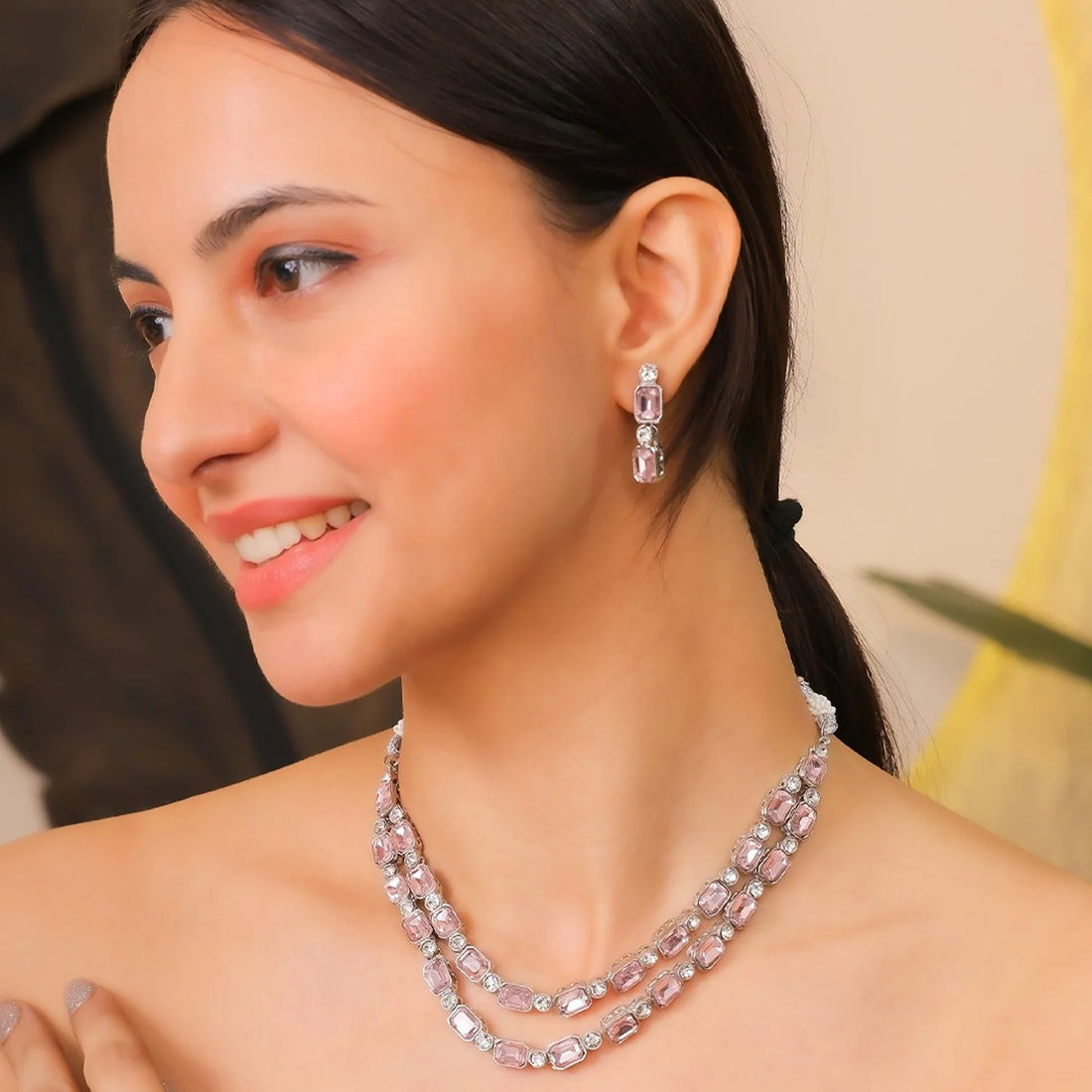 Add a soft touch of elegance to your look with this beautifully crafted pink crystal...