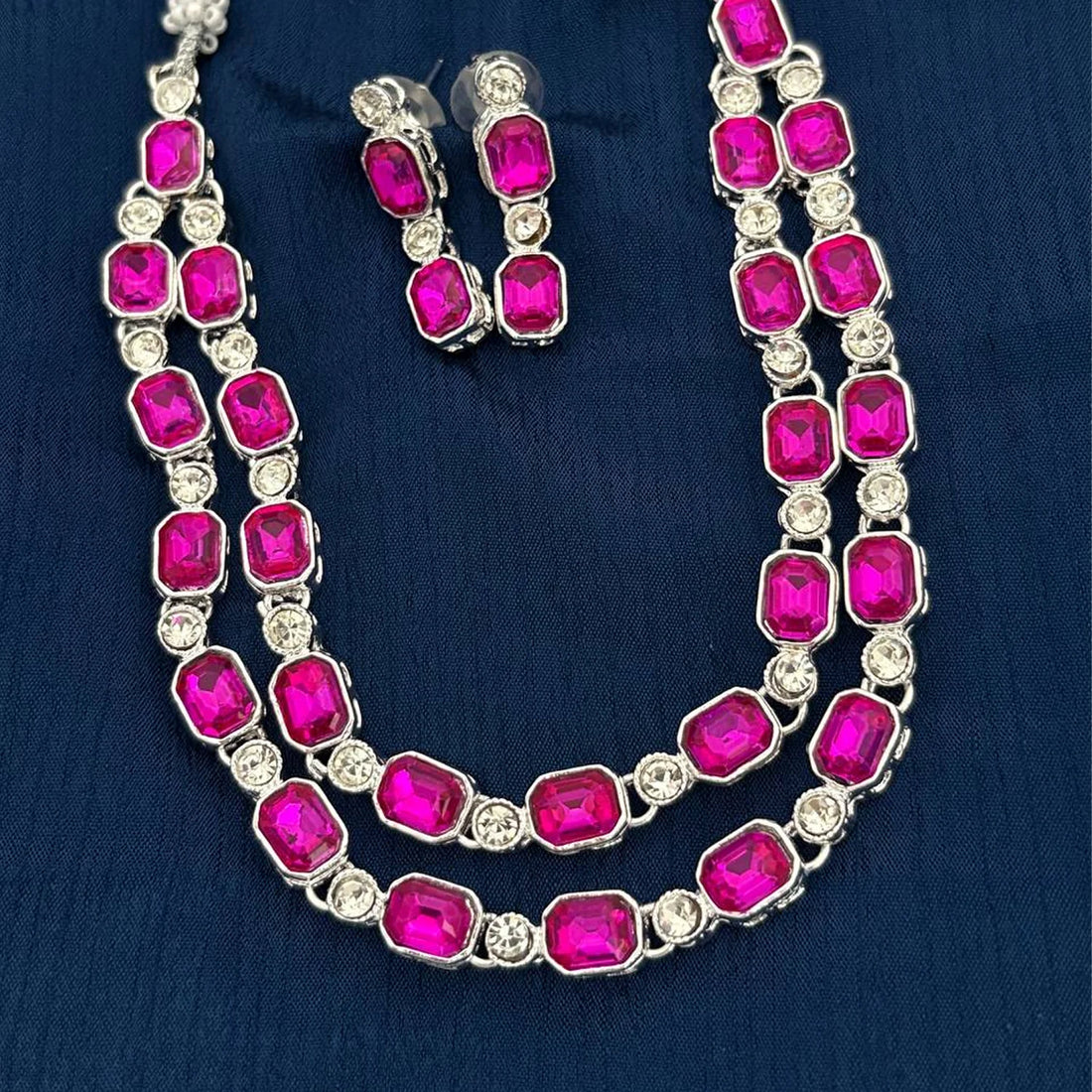 Make a bold and elegant statement with this stunning Rani pink double-layer necklace set, designed...